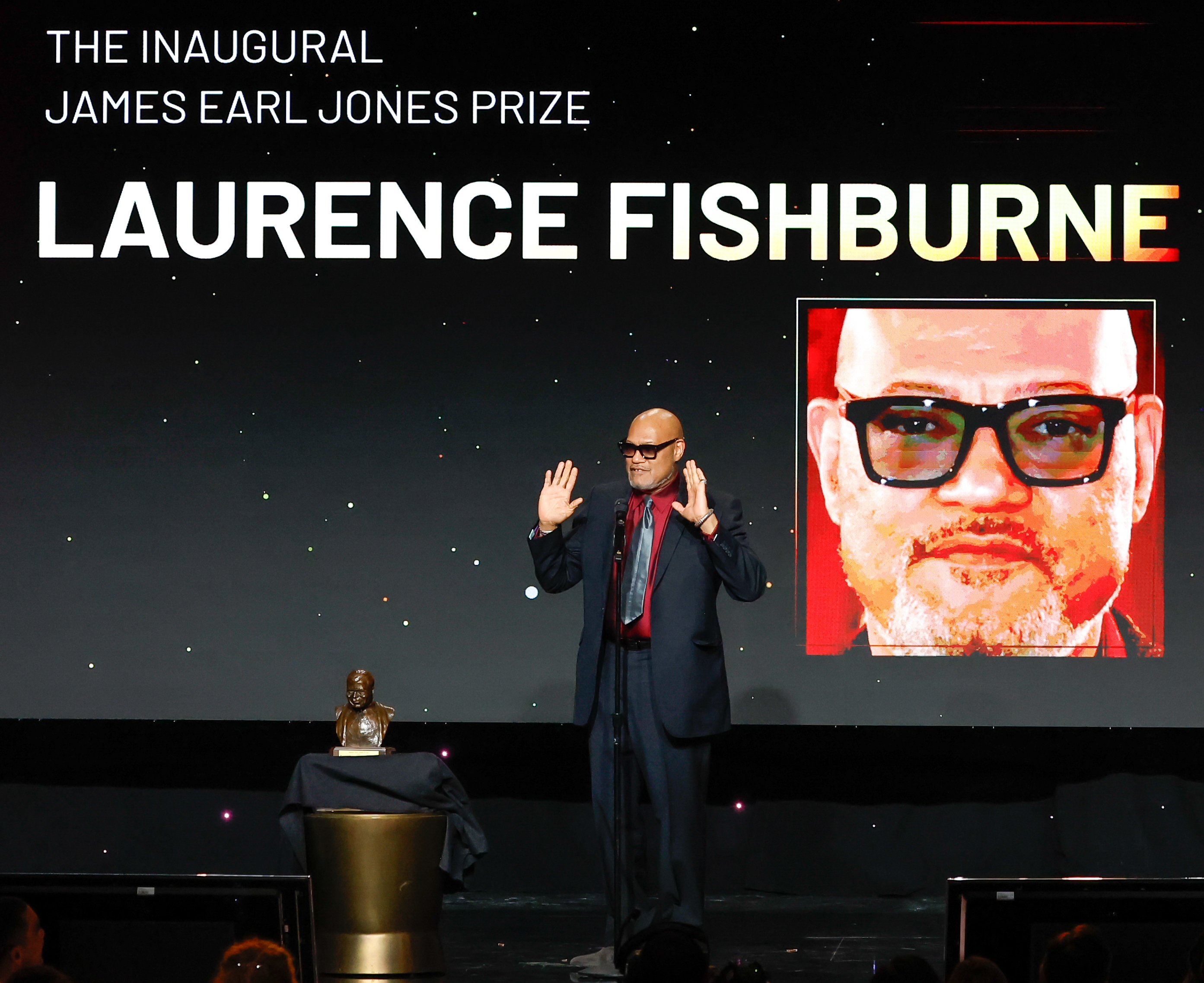 -- The inaugural James Earl Jones Prize, presented to screen legend Laurence Fishburne by actor Angela Bassett and James’ son Flynn Earl Jones. Formerly, this prize was the Voice Arts Icon Award, whose first recipient was James Earl Jones. SOVAS explains that “This new prize was created in honor of one of the world’s most influential artists, not just in the voice acting community, but in the entertainment industry at large, and will celebrate other performers who embody his artistic excellence, integrity, and cultural impact.” (Leon Bennett photo)